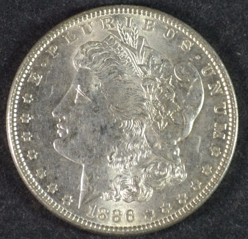 1886 MORGAN SILVER DOLLAR, CHOICE BU