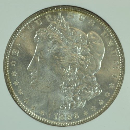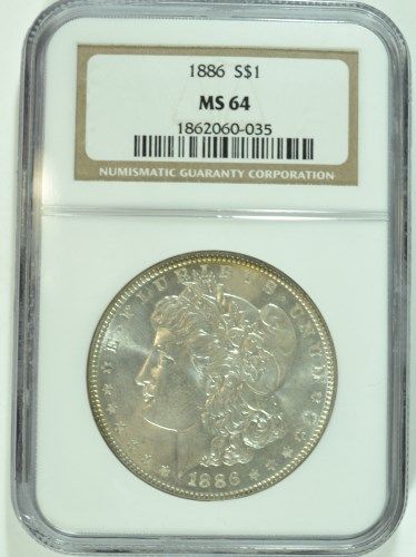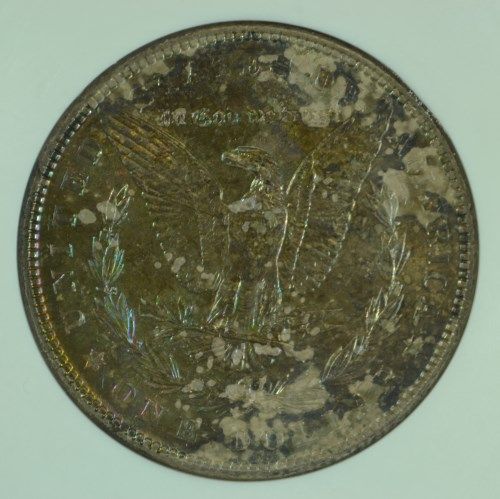 1886 MORGAN SILVER DOLLAR, NGC MS-64 WITH SUPER COLOR ON THE REVERSE