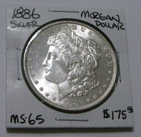 1886 MORGAN SILVER DOLLAR RED BOOK VALUE IS $175.00 *RARE MS-65 HIGH GRADE*!! ***Coin, Currency & All Items Listed in this auction - Grades, Conditions and Values are not Safe Deposit Coins LLC Responsibilty. Grades, Condition and Values are determined by Consigner(s) & Buyers ONLY