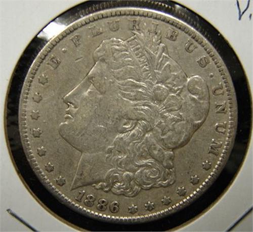 1886 U.S. MORGAN SILVER DOLLAR. VF.
