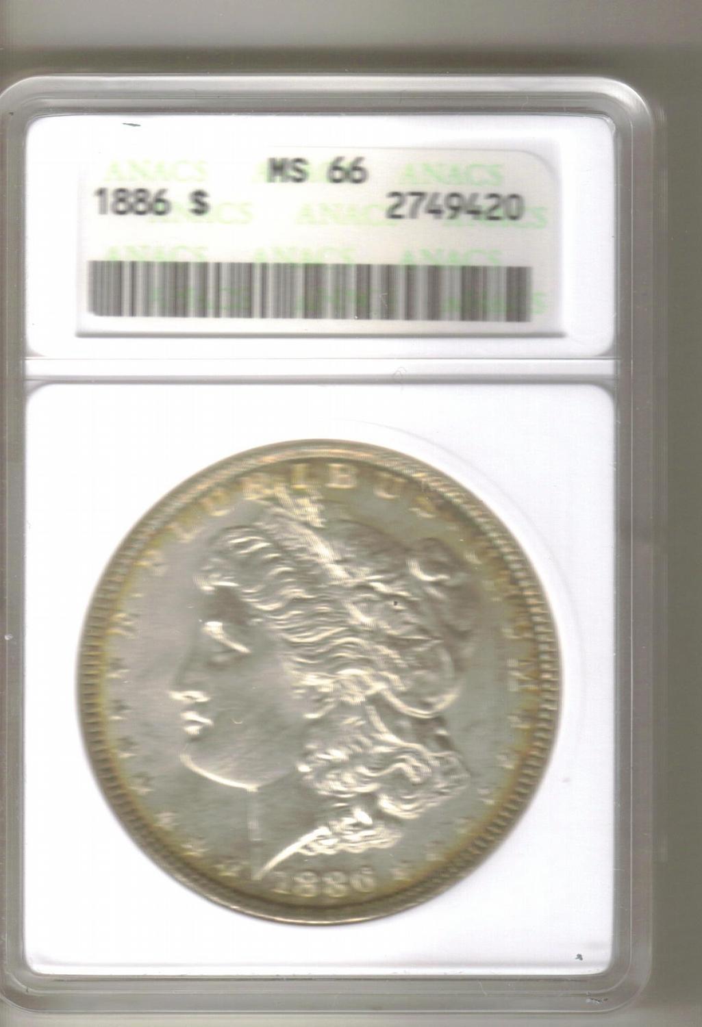 1886 MS-66 ANACS (2ND BEST GRADING CO.) MORGAN SILVER DOLLAR