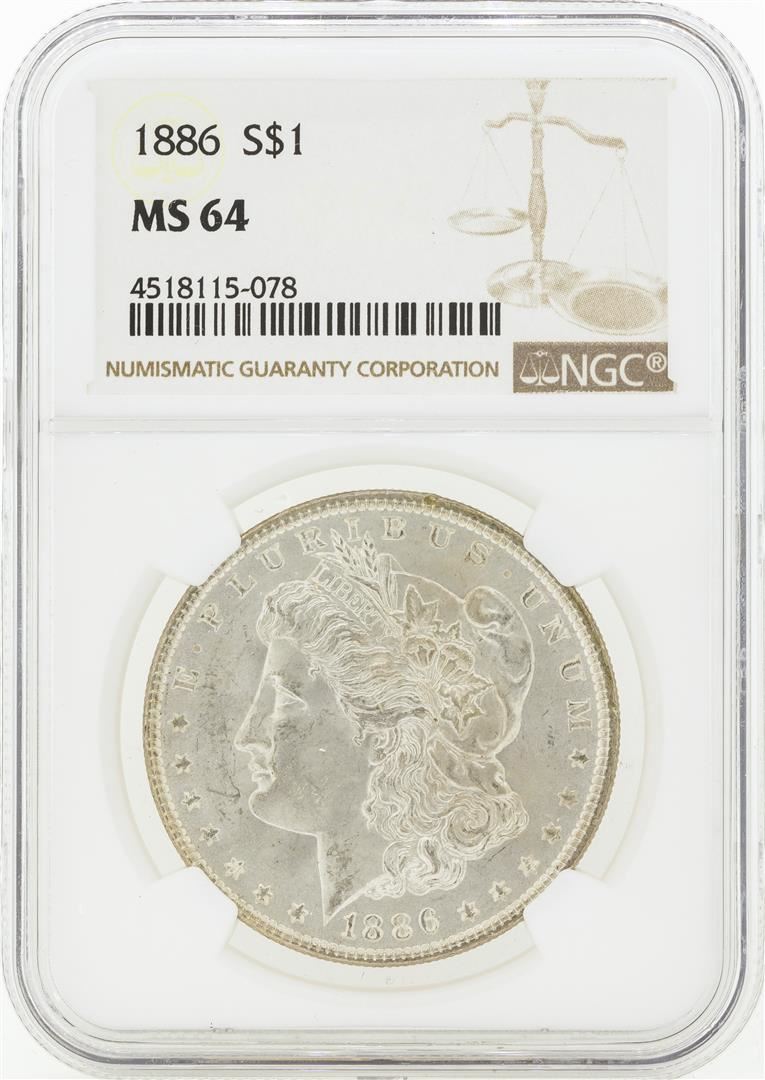 One 1886 MS64 NGC Morgan Silver Dollar NGC Certified.
