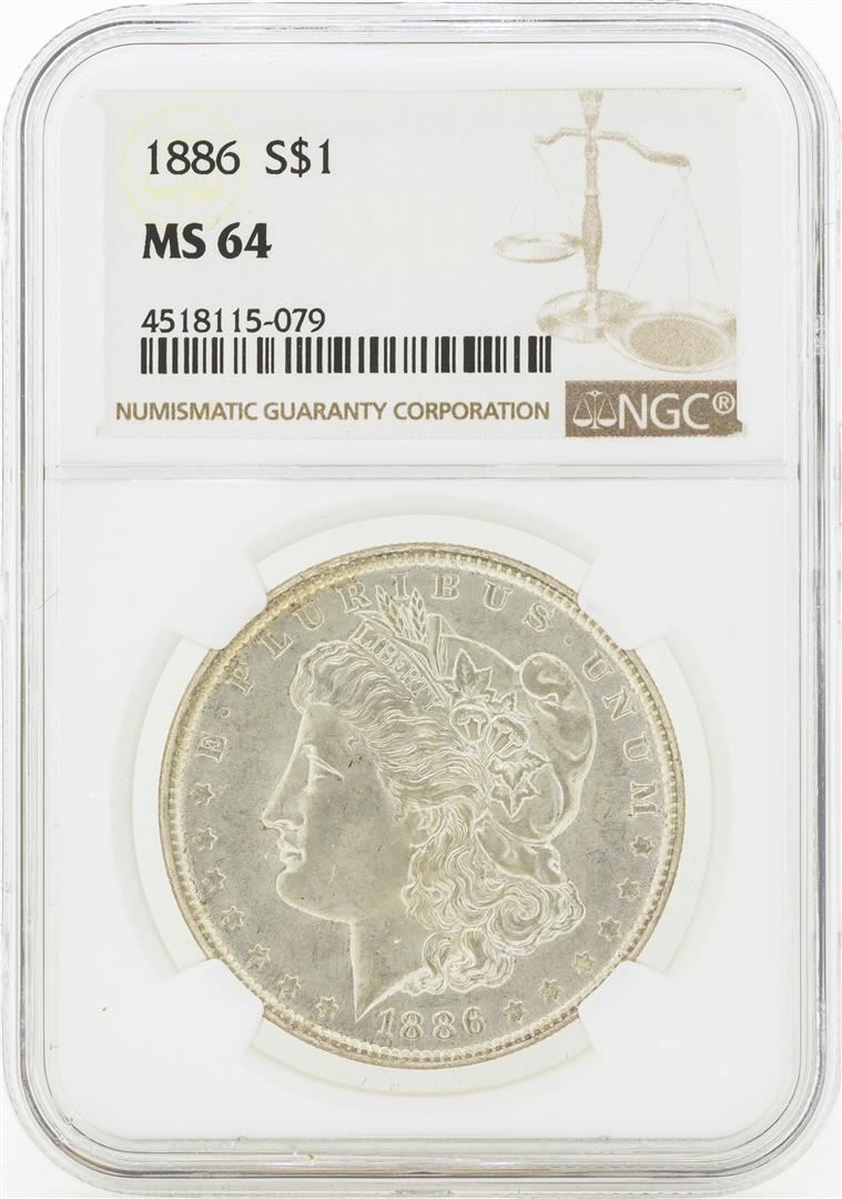 One 1886 MS64 NGC Morgan Silver Dollar NGC Certified.