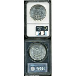 <B>1886<img border='0' src='http://www.heritagecoins.com/images/star.gif' width=10 height=10>$1 MS65 NGC,</B></I> iridescent multicolored obverse toning with a brilliant reverse; and an <B>1886 MS66 PCGS,</B></I> brilliant except for an arc of multicolored patination at the left obverse border. 2 Coins Lot:10222