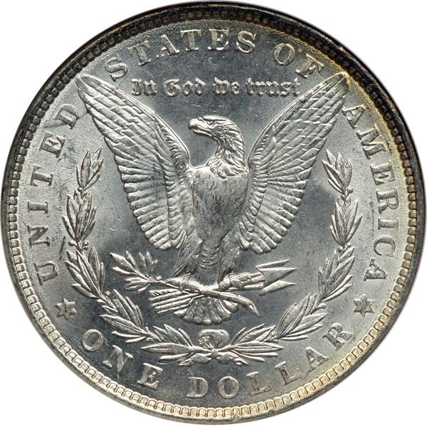 1886 Morgan Dollar. NGC graded MS-66. Star. An arc of lovely rainbow toning on the right obverse accompanies the smooth luster-flow which further imparts beauty to the soin (PCGS # 7166) .