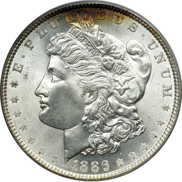 1886 Morgan Dollar. PCGS graded MS-65 PQ. CAC Approved. Housed in an Old Green Holder. Well struck and mostly white (PCGS # 7166) .