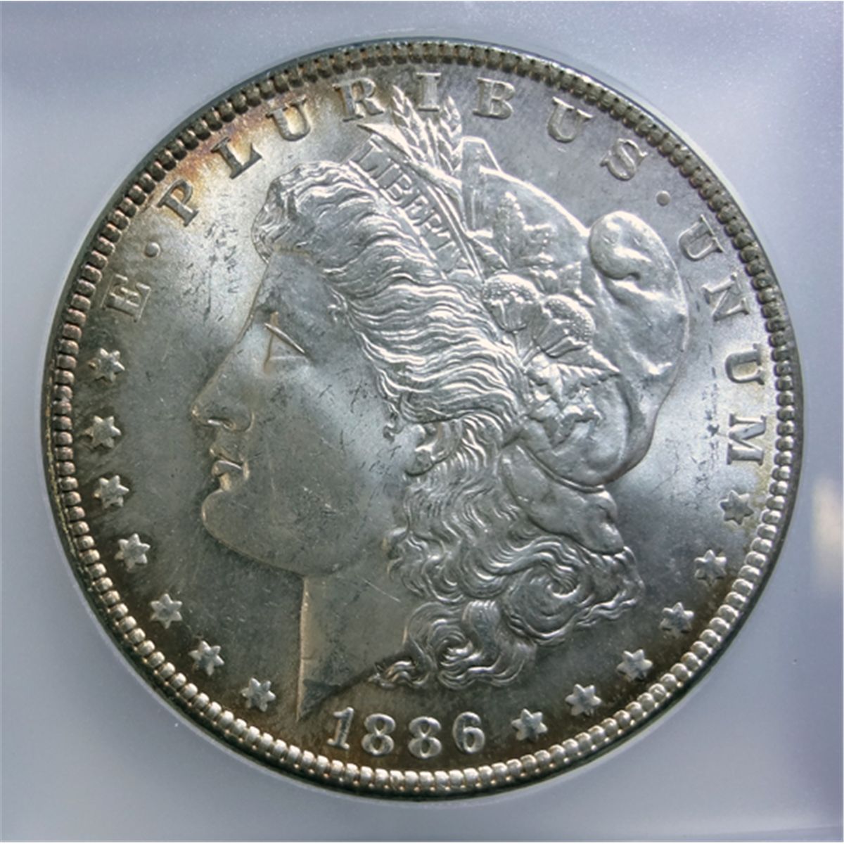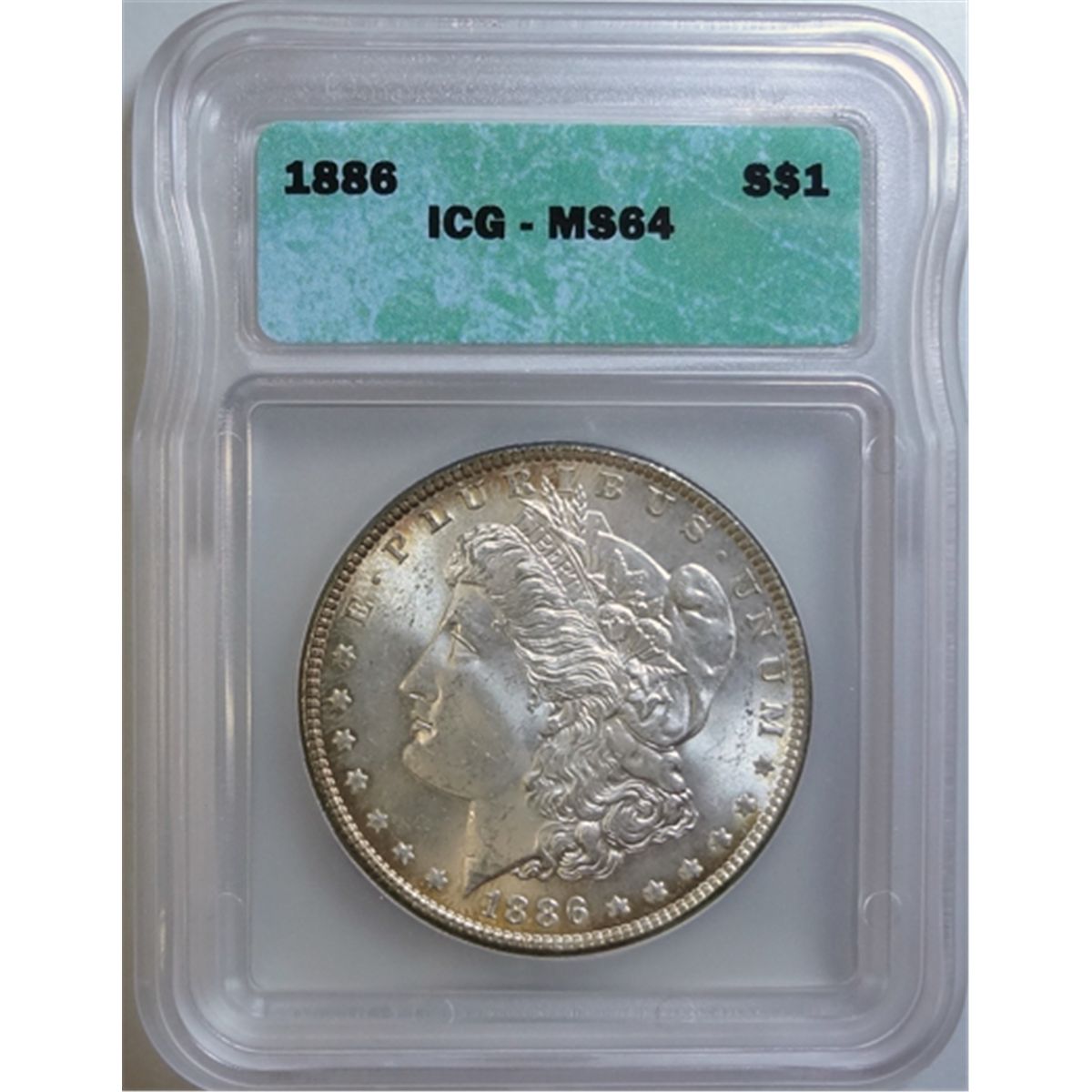 1886 Morgan $ ICG64 bottom of roll coin toned rev only