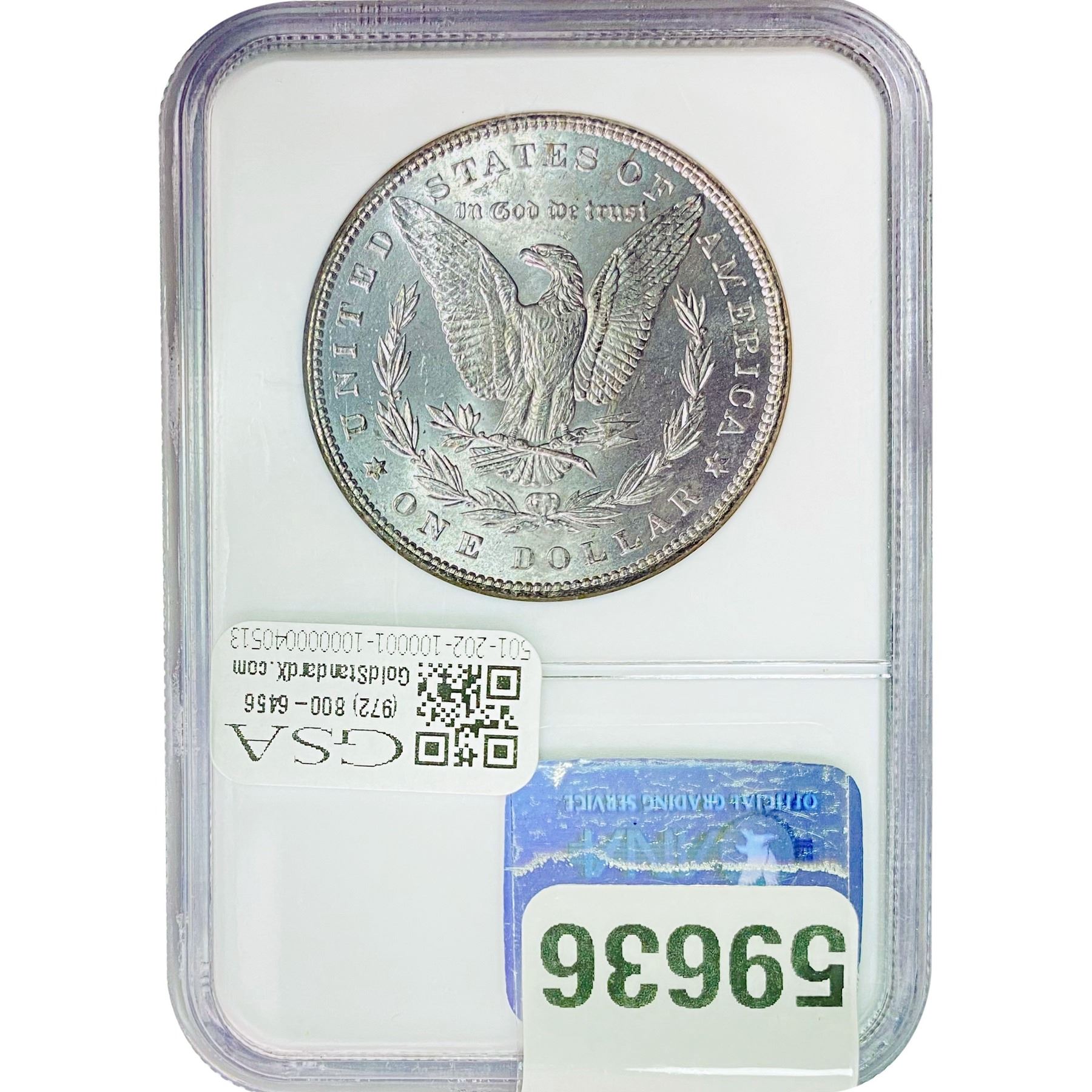 COINS AND CURRENCY LISTED IN GSA’S CATALOG AS GRADED AND ENCAPSULATED BY PCGS, NGC, ANACS, ICG, PCGS CURRENCY, PMG, PCGS BANKNOTE GRADING, CMC OR ANY OTHER THIRD-PARTY GRADING SERVICE ARE LIKEWISE SOLD “AS-IS” EXCEPT AS EXPRESSLY SET FORTH HEREIN. ALL THIRD-PARTY GRADING SERVICE GUARANTEES, INCLUDING AUTHENTICITY, ARE THE SOLE RESPONSIBILITY OF THE THIRD-PARTY GRADING SERVICE AND NOT WARRANTIES OR GUARANTEES OF GSA. BIDDERS SHOULD CONTACT THESE THIRD-PARTY GRADING SERVICES DIRECTLY WITH RESPECT TO ANY CLAIMS OR QUESTIONS THEY MAY HAVE CONCERNING THEIR GUARANTEES AND WARRANTIES. BIDDERS ACKNOWLEDGE AND AGREE THAT AUCTIONEER IS NOT BOUND BY OR LIABLE FOR ANY OPINION OR CERTIFICATION BY ANY THIRD-PARTY GRADING SERVICE. REMOVAL OF A PRODUCT FROM ITS PROTECTIVE CASING OR HOLDER OR ALTERATION OF ANY COIN HOLDER WAIVES ALL RIGHTS CONCERNING THE PRODUCT CONTAINED THEREIN.
