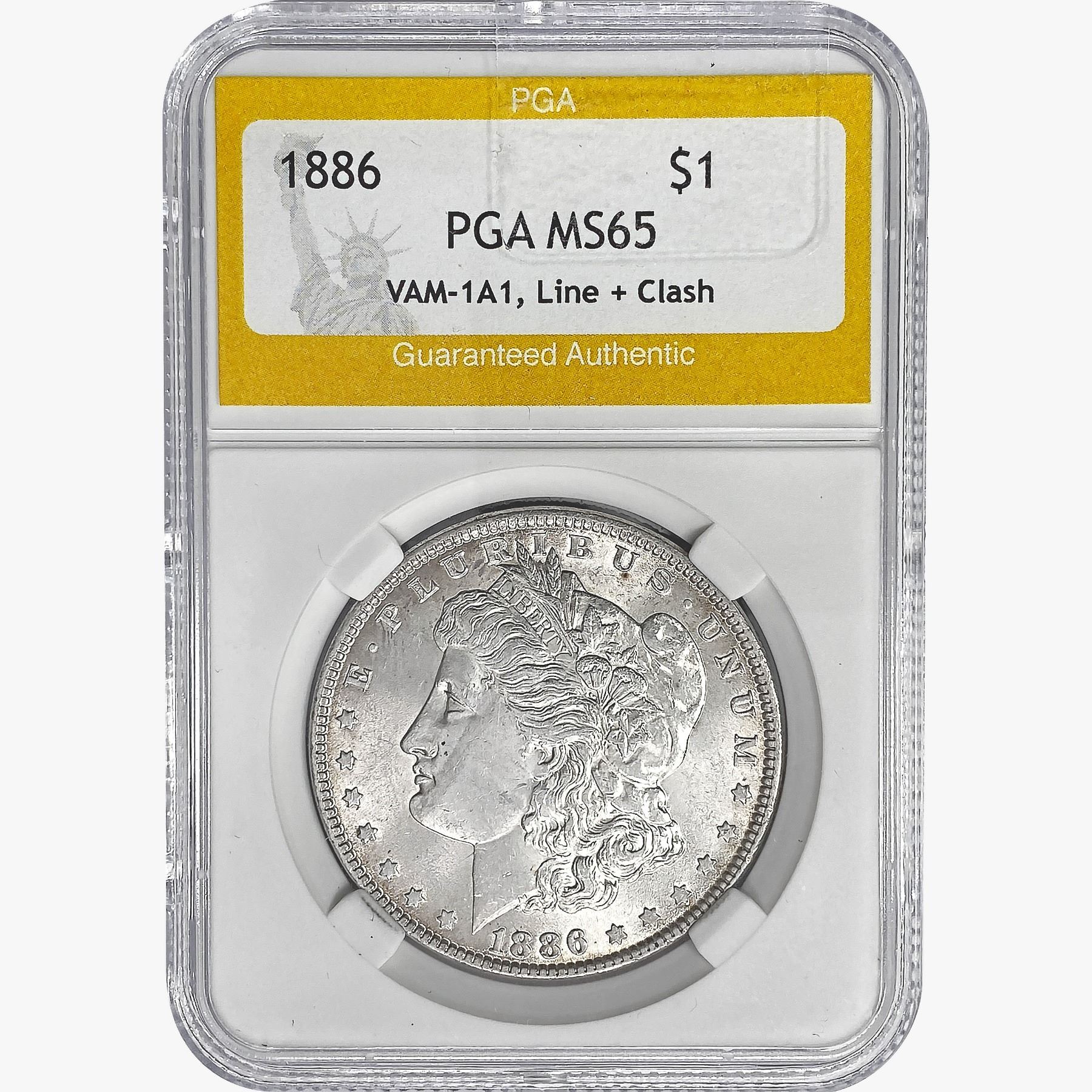 1886 Morgan Silver Dollar PGA MS65 VAM-1A1 Line +