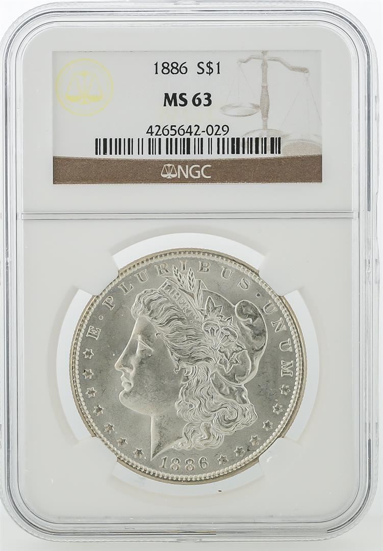 One 1886 NGC MS63 Morgan Silver Dollar. NGC Certified.