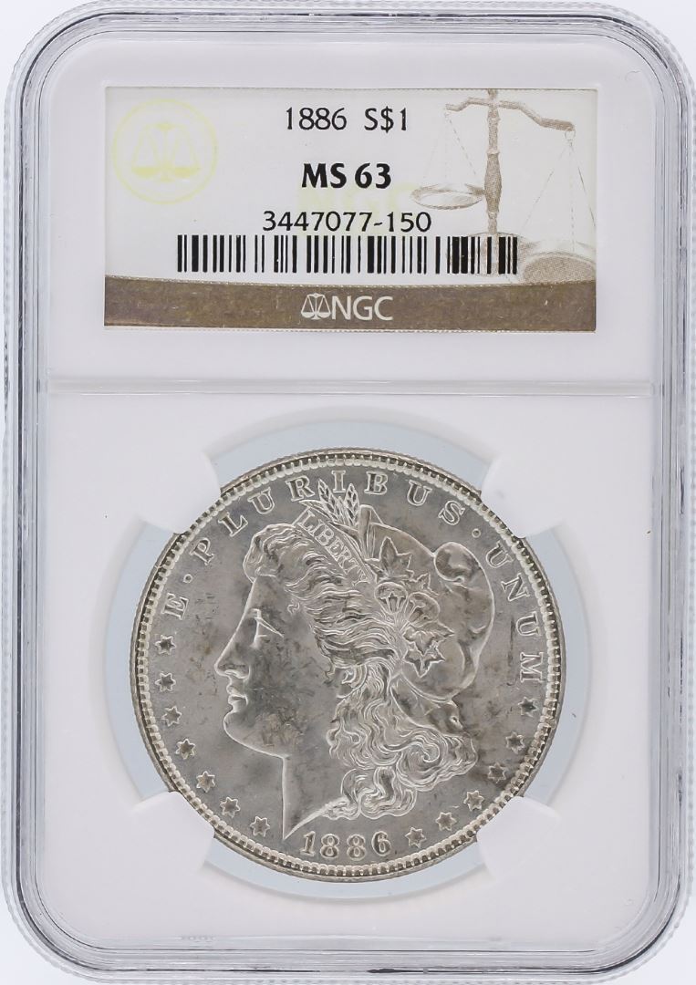 One 1886 NGC MS63 Morgan Silver Dollar.
