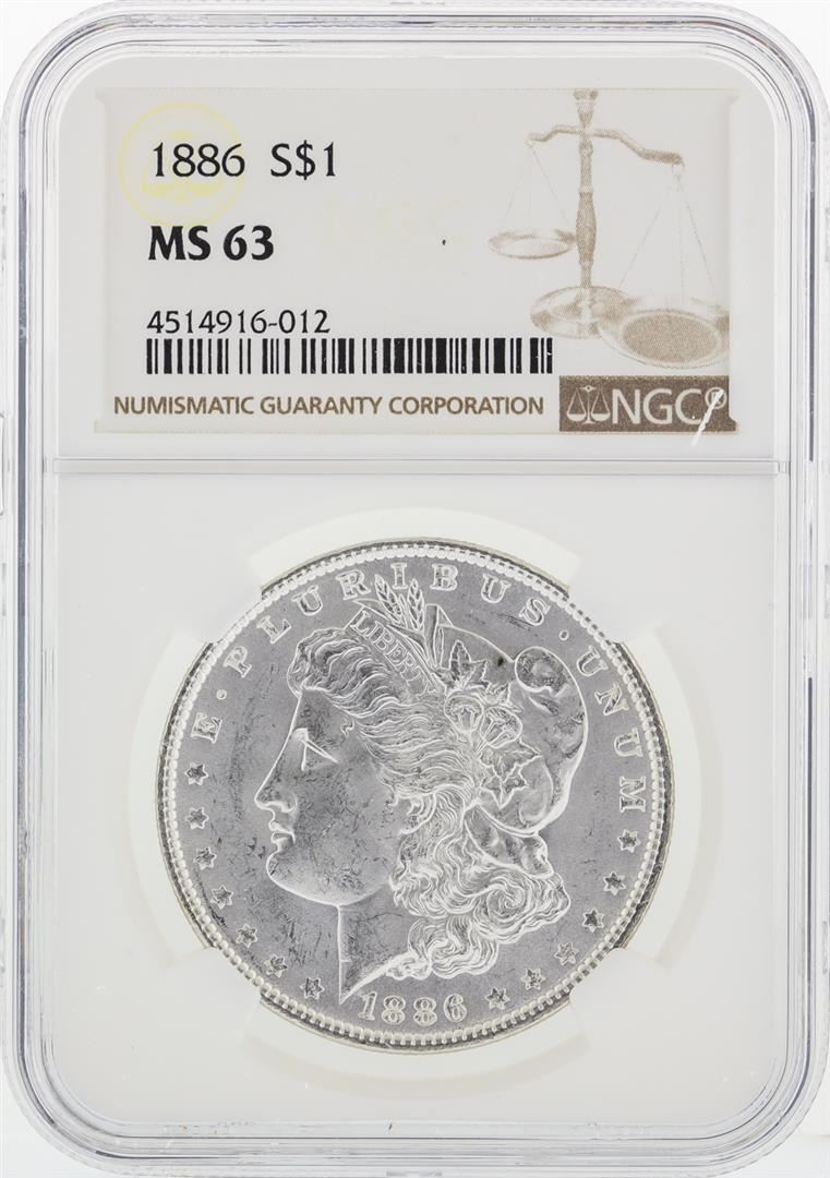 One 1886 NGC MS63 Morgan Silver Dollar. NGC Certified.