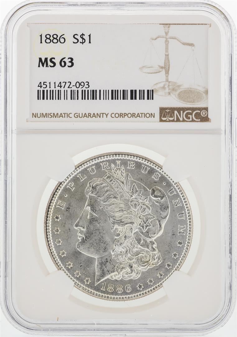 One 1886 NGC MS63 Morgan Silver Dollar. NGC Certified.