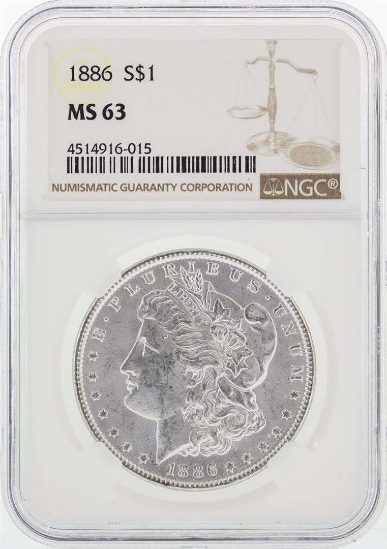 One 1886 NGC MS63 Morgan Silver Dollar. NGC Certified.
