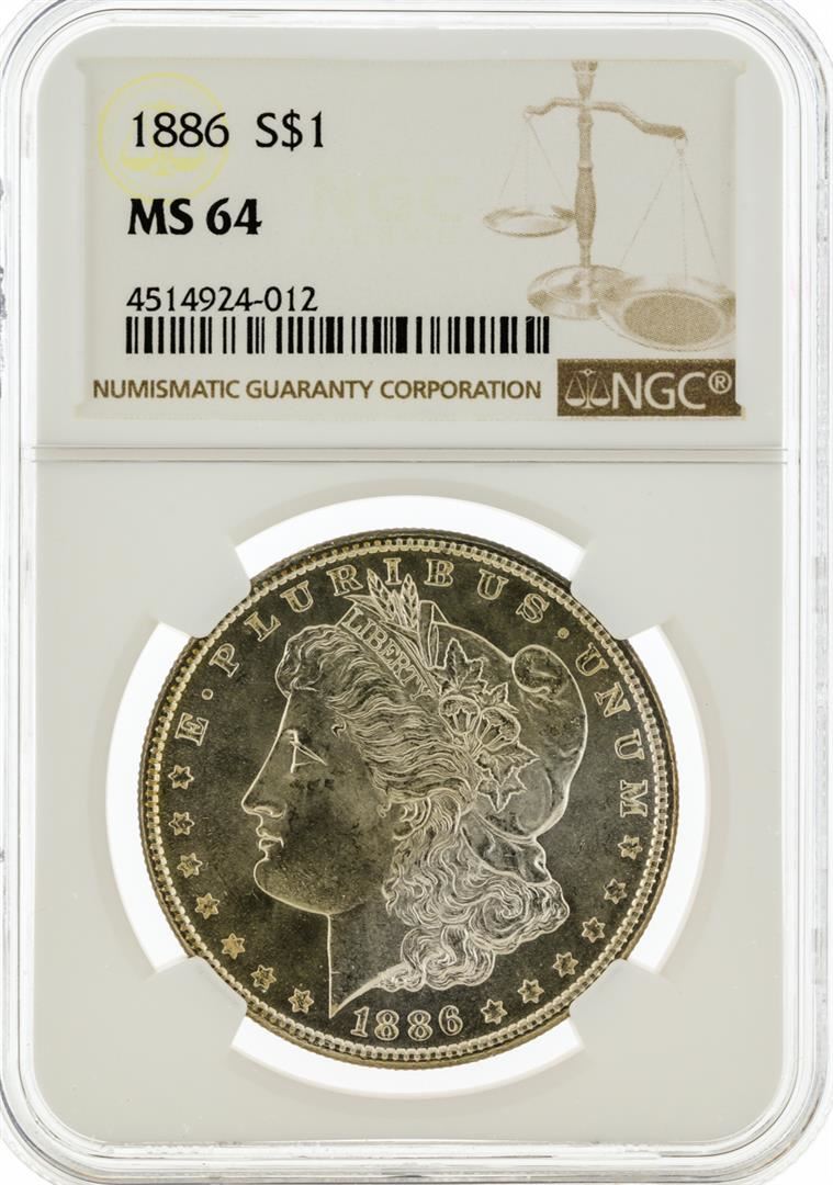 One 1886 NGC MS64 Morgan Silver Dollar. NGC Certified.