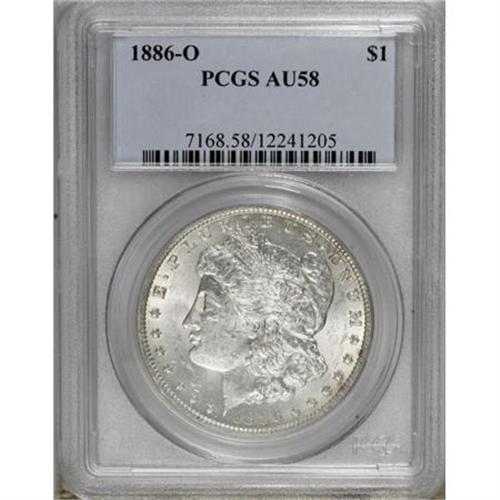 <B>1886-O $1 AU58 PCGS.</B></I> . PCGS Population (634/1786). NGC Census: (964/1273). Mintage: 10,710,000. Numismedia Wsl. Price for NGC/PCGS coin in AU58: $200. (#7168)<BR><BR><B>Coin Engraver:</B> George T. Morgan<BR><BR><b>Shipping:</b> Coins & Currency (<a target="_blank" href="http://www.heritageauctions.com/common/shipping.php">view shipping information</a>)