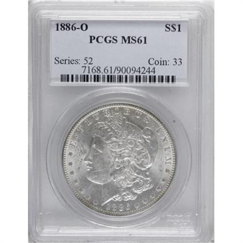 <B>1886-O $1 MS61 PCGS.</B></I> PCGS Population (265/1150). NGC Census: (344/722). Mintage: 10,710,000. Numismedia Wsl. Price for NGC/PCGS coin in MS61: $650. (#7168)<BR><I>From The Diamond Head Collection.</B></I><BR><BR><B>Coin Engraver:</B> George T. Morgan<BR><BR><b>Shipping:</b> Coins & Currency (<a target="_blank" href="http://www.heritageauctions.com/common/shipping.php">view shipping information</a>\)