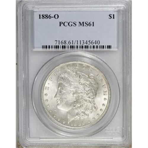 <B>1886-O $1 MS61 PCGS.</B></I> PCGS Population (288/1262). NGC Census: (362/756). Mintage: 10,710,000. Numismedia Wsl. Price for NGC/PCGS coin in MS61: $650. (#7168)<BR><BR><B>Coin Engraver:</B> George T. Morgan<BR><BR><b>Shipping:</b> Coins & Currency (<a target="_blank" href="http://www.heritageauctions.com/common/shipping.php">view shipping information</a>)