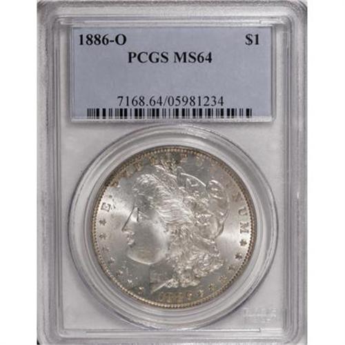 <B>1886-O $1 MS64 PCGS.</B></I> A delightful presentation in regards to both strike and luster, two qualities that are usually compromised on this difficult issue. The untoned, silvery surfaces offer radiant cartwheel luster that is nearly unparalleled for an 1886-O in this cataloger's experience, and the frosty surfaces are undisturbed aside from an inconspicuous group of faint marks above the bust tip. The strike boldly articulates the feathers on the eagle's breast, and only the hair above the ear shows the usual weakness. Some light, undistracting roller marks appear on Liberty's jawline. PCGS has graded only three pieces finer than this attractive example (1/08).<BR><I>From The Oxford Collection.</B></I><BR><BR><B>Coin Engraver:</B> George T. Morgan<BR><BR><b>Shipping:</b> Coins & Currency (<a target="_blank" href="http://www.heritageauctions.com/common/shipping.php">view shipping information</a>)