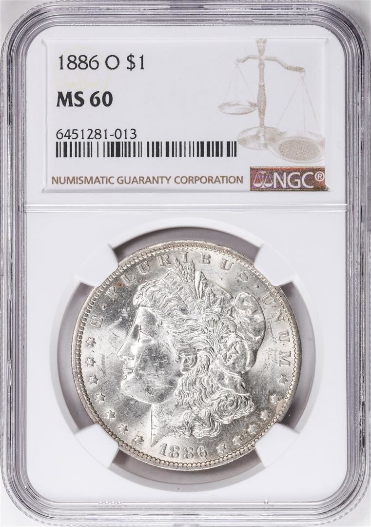 One 1886-O $1 Morgan Silver Dollar Coin NGC MS60. NGC Certified.