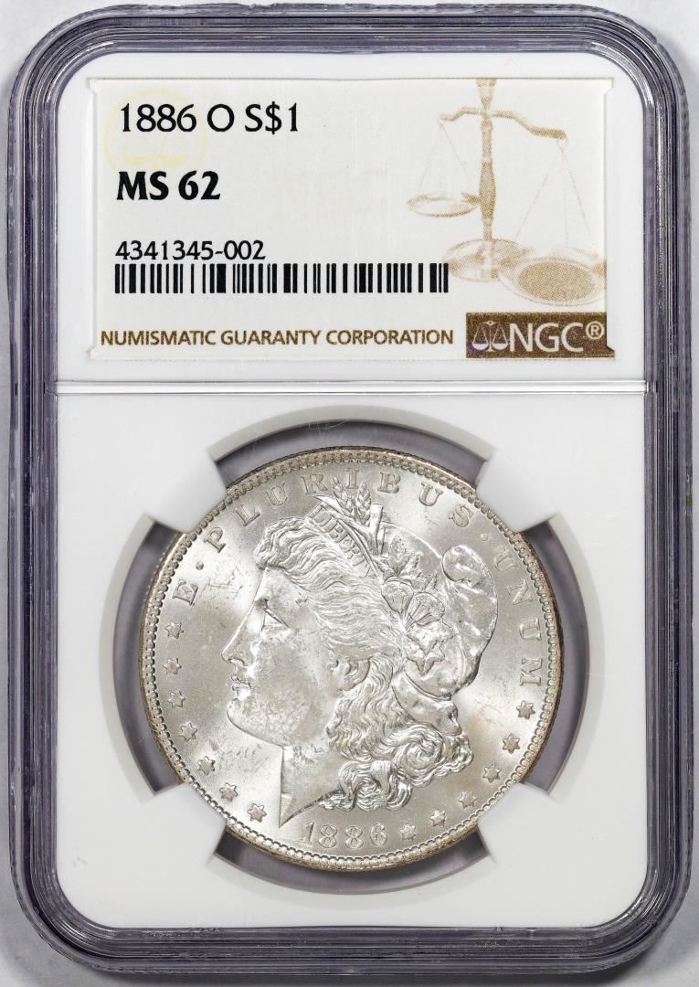One 1886-O $1 Morgan Silver Dollar Coin NGC MS62. NGC Certified.