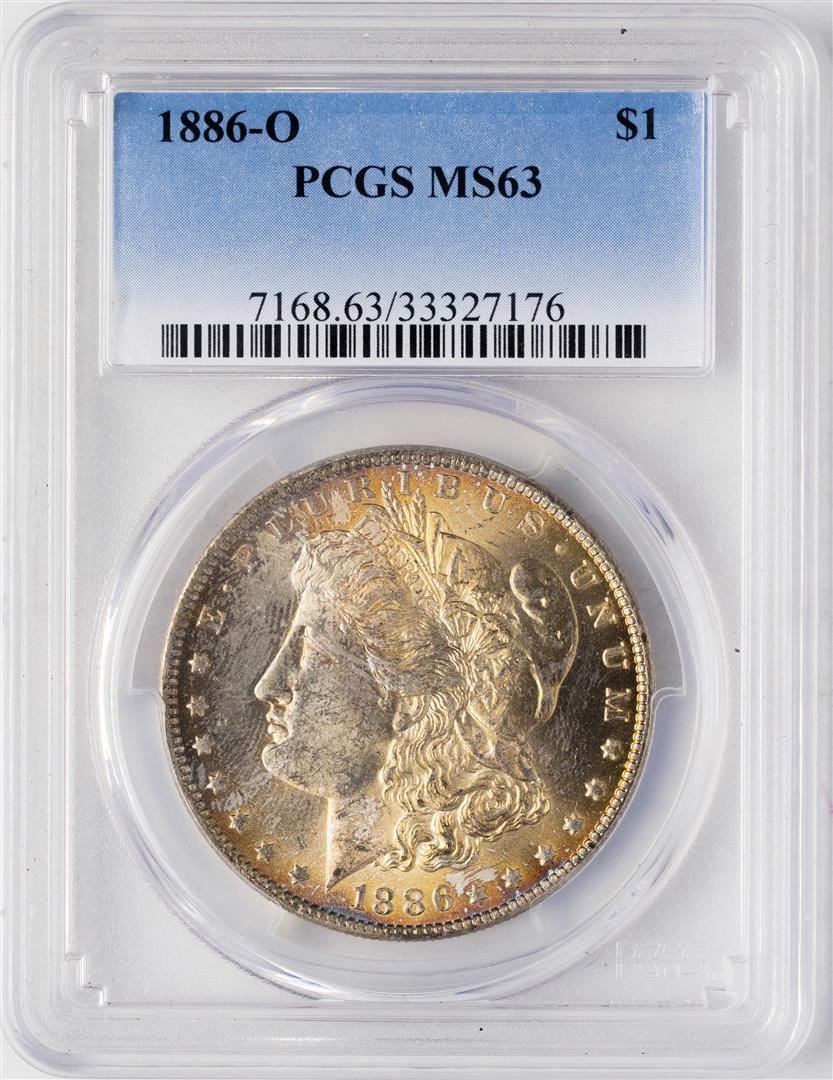 One 1886-O $1 Morgan Silver Dollar Coin PCGS MS63 Nice Toning. PCGS Graded.