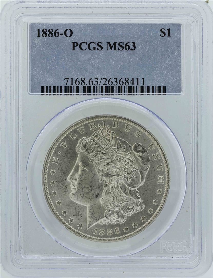 One 1886-O $1 Morgan Silver Dollar Coin PCGS MS63. PCGS Graded.