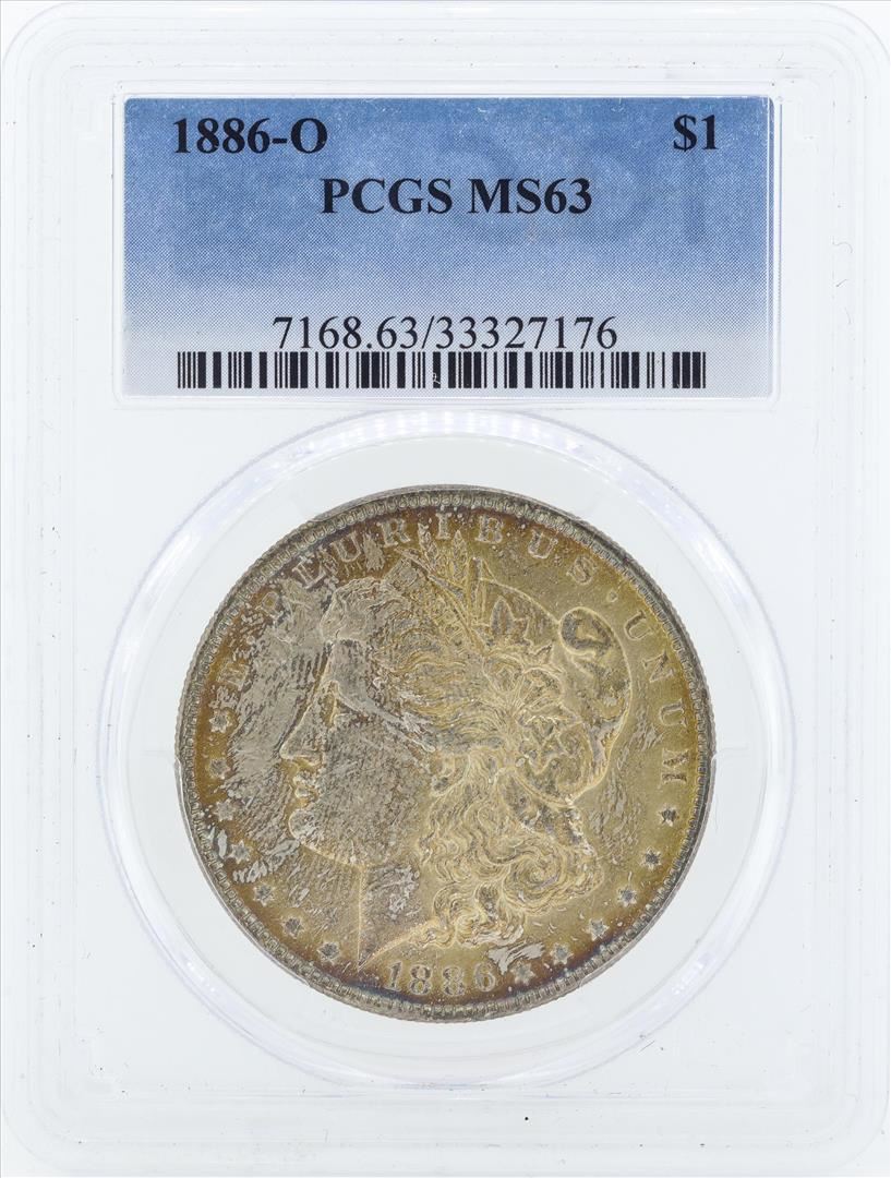 One 1886-O $1 Morgan Silver Dollar Coin PCGS MS63. PCGS Graded.