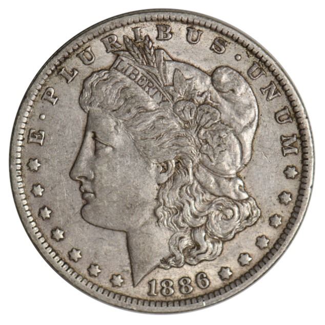 One 1886-O $1 Morgan Silver Dollar.