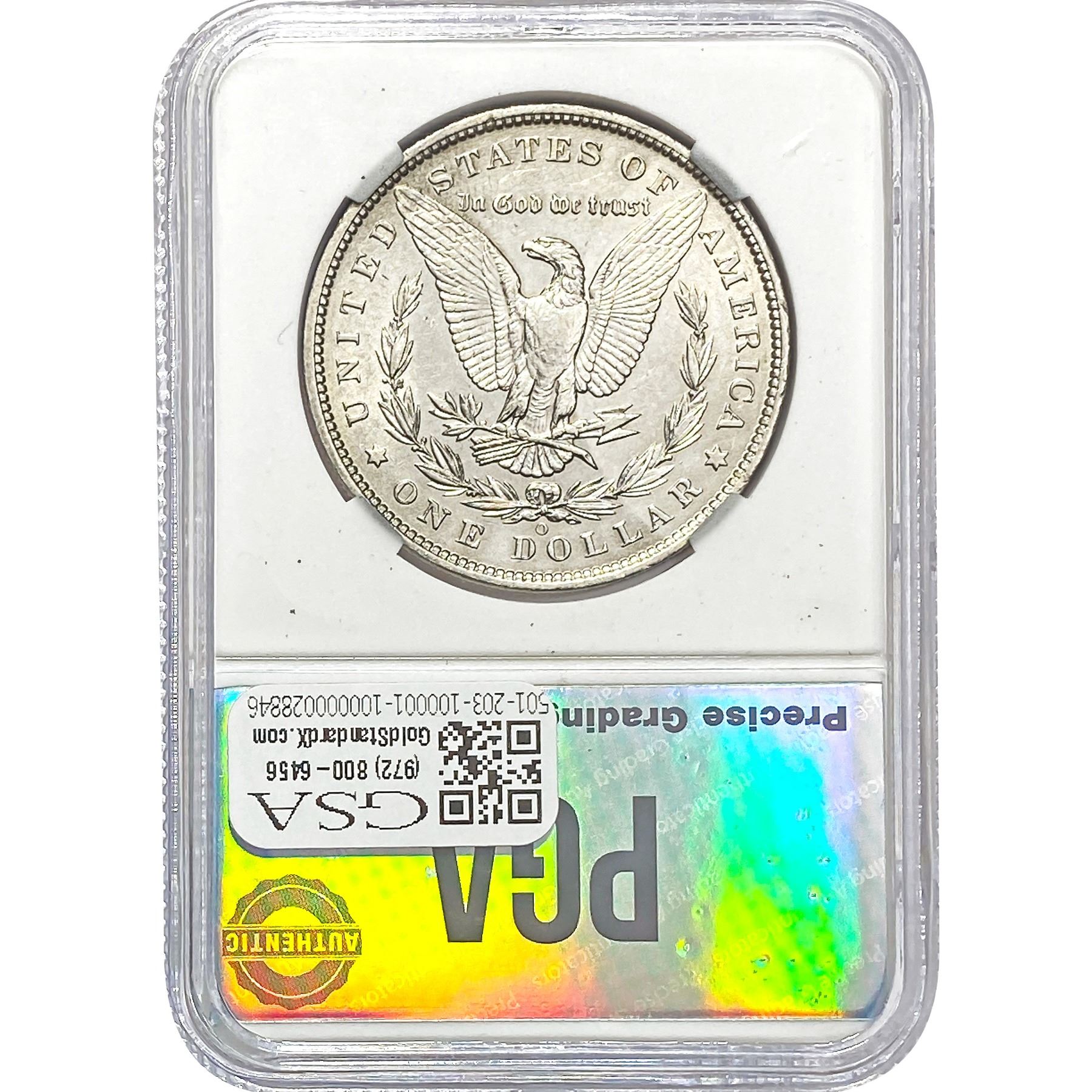 e. Coins sold referencing a third-party grading service are sold “AS IS” without any express or implied warranty, except for a guarantee by GSA that they are genuine. Removal or alteration of the holder, voids all of Bidder’s claims concerning that Product. Certain warranties may be available from the grading services and Bidders are referred to them for further details: Numismatic Guaranty Corporation (NGC), PO Box 4776, Sarasota, FL 34230, www.ngccoin.com/services/writtenguarantee.asp; Professional Coin Grading Services (PCGS), PO Box 9458, Newport Beach, CA 92658, www.pcgs.com/guarantee.html; ANACS, 6555 S. Kenton St., Ste. 303, Englewood, CO 80111; and Independent Coin Grading Co. (ICG), 7901 East Bellview, Ave., Suite 50, Englewood, CO 80111.