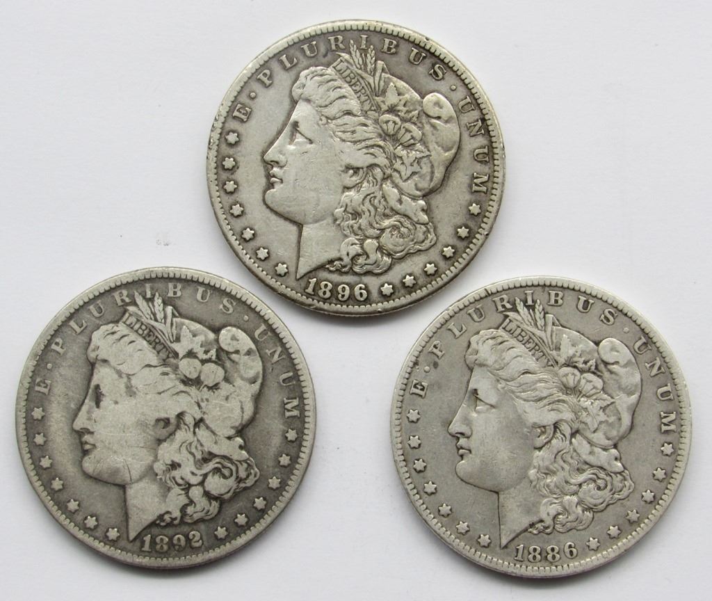 1886-O, 1896-S, 1892-O MORGAN DOLLARS CIRC