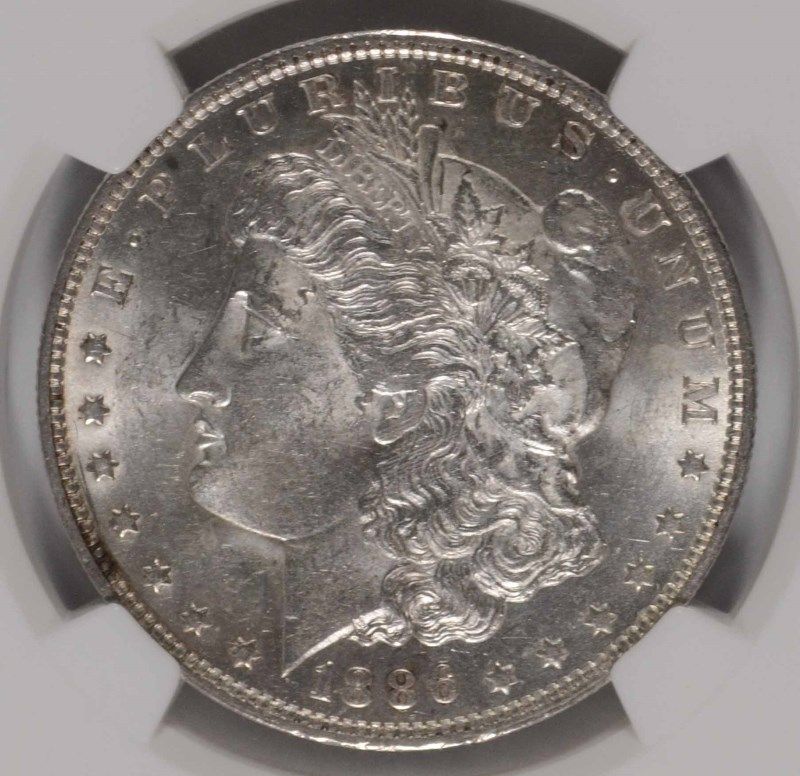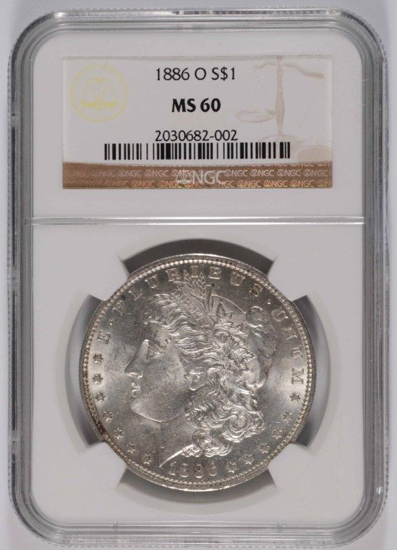 1886-O MORGAN SILVER DOLLAR, NGC MS-60 WHITE! HARD TO FIND IN THIS GRADE!!