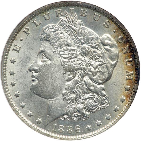 1886-O Morgan Dollar. NGC graded MS-62. Scarce date in Mint State. Frosty and mostly untoned (PCGS # 7168) .