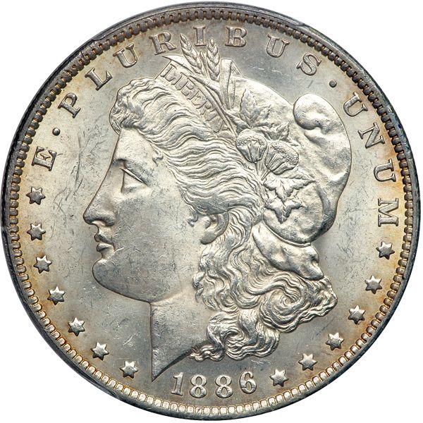 1886-O Morgan Dollar. PCGS graded MS-62 CAC Approved. A hint of light gold tone (PCGS # 7168) .