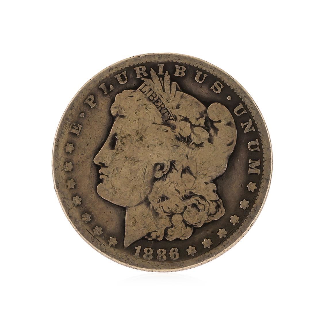 One 1886-O Morgan Silver Dollar.
