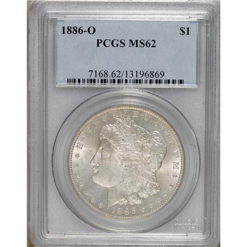 <B>1886-O S$1 MS62 PCGS.</B></I> This New Orleans representative displays lustrous, essentially untoned surfaces. A sharp strike brings out good definition on most of the design elements, save for minor softness in the centers. A few minute contact marks and luster grazes are noted, particularly on the obverse.<BR><BR><b>Shipping:</b> Coins & Currency (<a target="_blank" href="http://www.heritageauctions.com/common/shipping.php">view shipping information</a>)