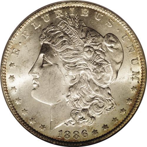 <B>1886-O<img border='0' src='http://www.heritagecoins.com/images/star.gif' width=10 height=10>$1 MS64 PCGS.</B></I> Even though more than 10 million pieces were struck of the 1886-O dollar, it is one of the scarcest O-mint Morgans. Most are drab in appearance, unlike this lovely, well-preserved example. This piece looks like it could be an 1884-O or an '85-O with its thick, satiny luster. The surfaces are also unusually clean for this issue. Sharply defined, each side is mostly brilliant with a light accent of toning around the obverse periphery. Population: 174 in 64, 3 finer (1/06).<BR><I>From The Leslie E. Lunsford Collection, #7 Current Finest Registry Morgan Dollars Basic Set, Circulation Strikes.</B></I>