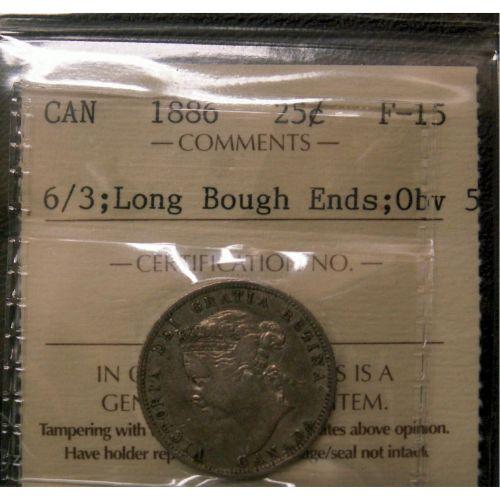 1886 Obv #5 6 over 3 variety 25¢ ICCS F-15,