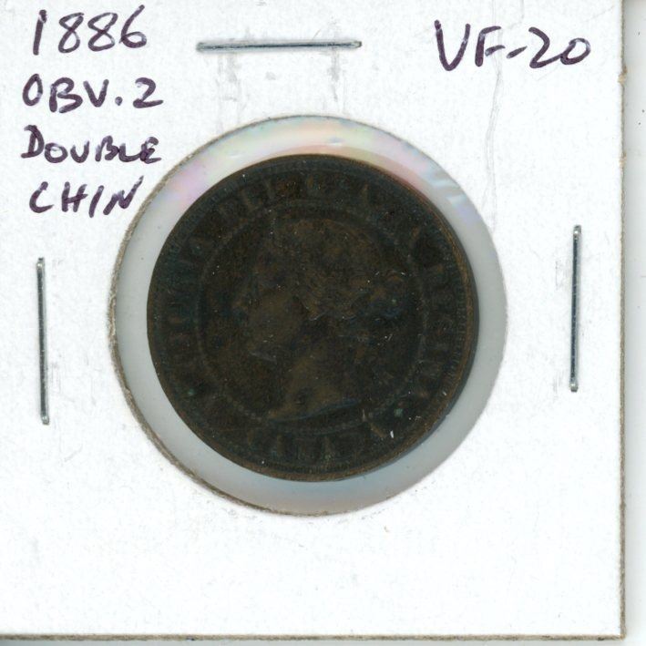 1886 Obverse 2 (Double Chin) Canadian Victorian Large Cent. VF-20.