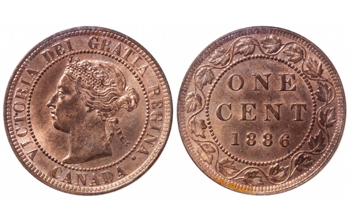 1886. Obverse port. #2. ICCS Mint State-65. Red. 90% red luster. Tied for the 'Finest' graded by ICCS.