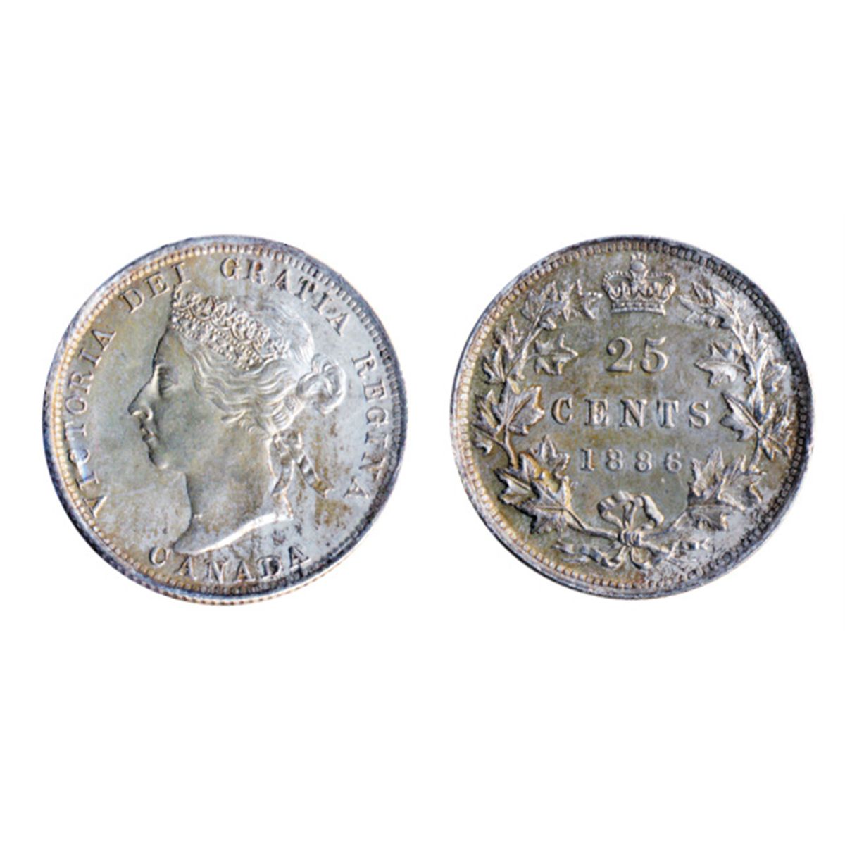 1886. Obverse port. #5. Designated a 6/3 variety (should be a 6/7). Long Bough Ends. Strong strike. ICCS AU-58. Light to medium heavy toning.