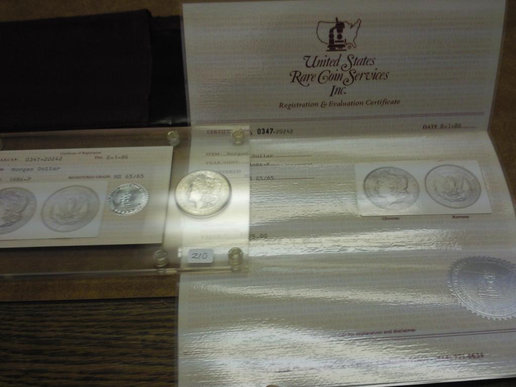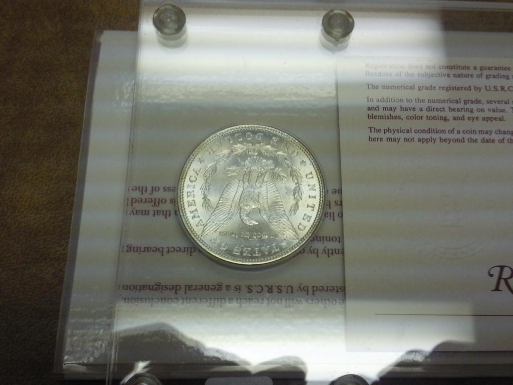 OLD 3RD PARTY GRADING SLAB, COMES WITH REGISTRATION AND EVALUATION CERTIFICATE FROM UNITED STATES RARE COIN SERVICES INC