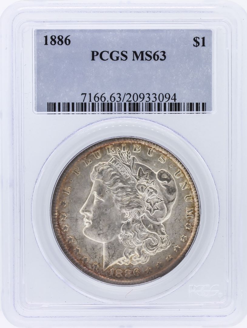 One 1886 PCGS MS63 Morgan Silver Dollar. PCGS Certified.
