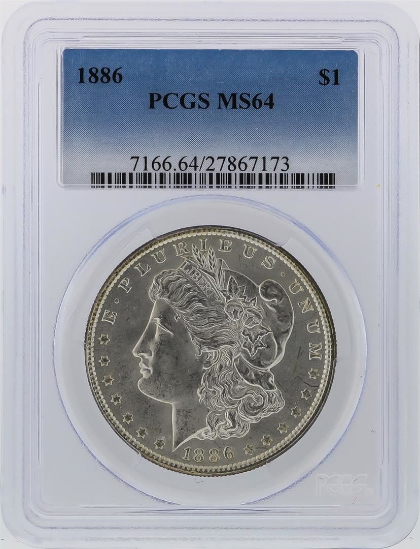 One 1886 PCGS MS64 Morgan Silver Dollar. PCGS Certified.