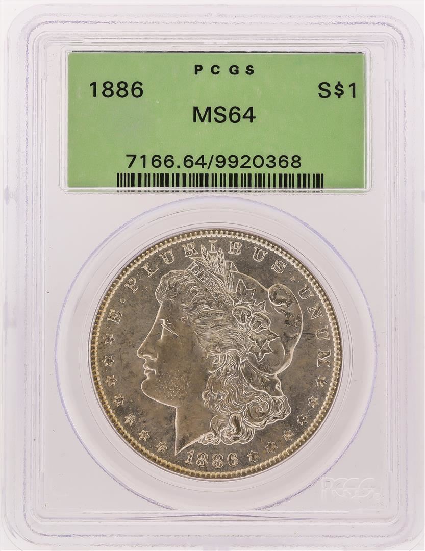 One 1886 PCGS MS64 Morgan Silver Dollar. PCGS Certified.