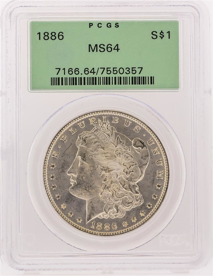 One 1886 PCGS MS64 Morgan Silver Dollar. PCGS Certified.