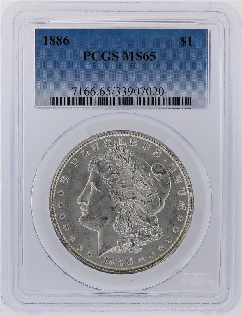 One 1886 PCGS MS65 Morgan Silver Dollar. PCGS Certified.