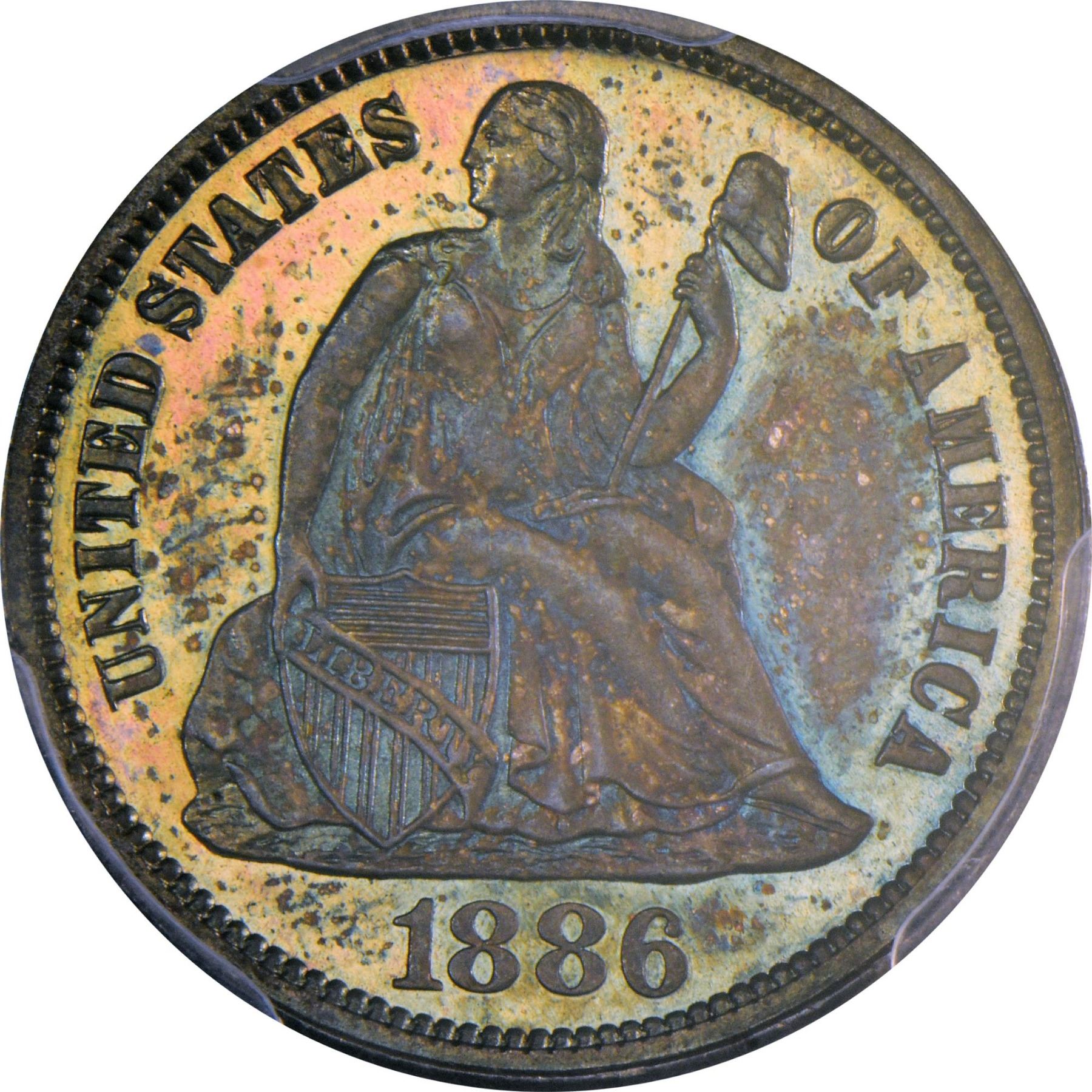 One 1886 Proof Seated Liberty Dime Coin Arrows PCGS PR66 CAC Amazing Toning.