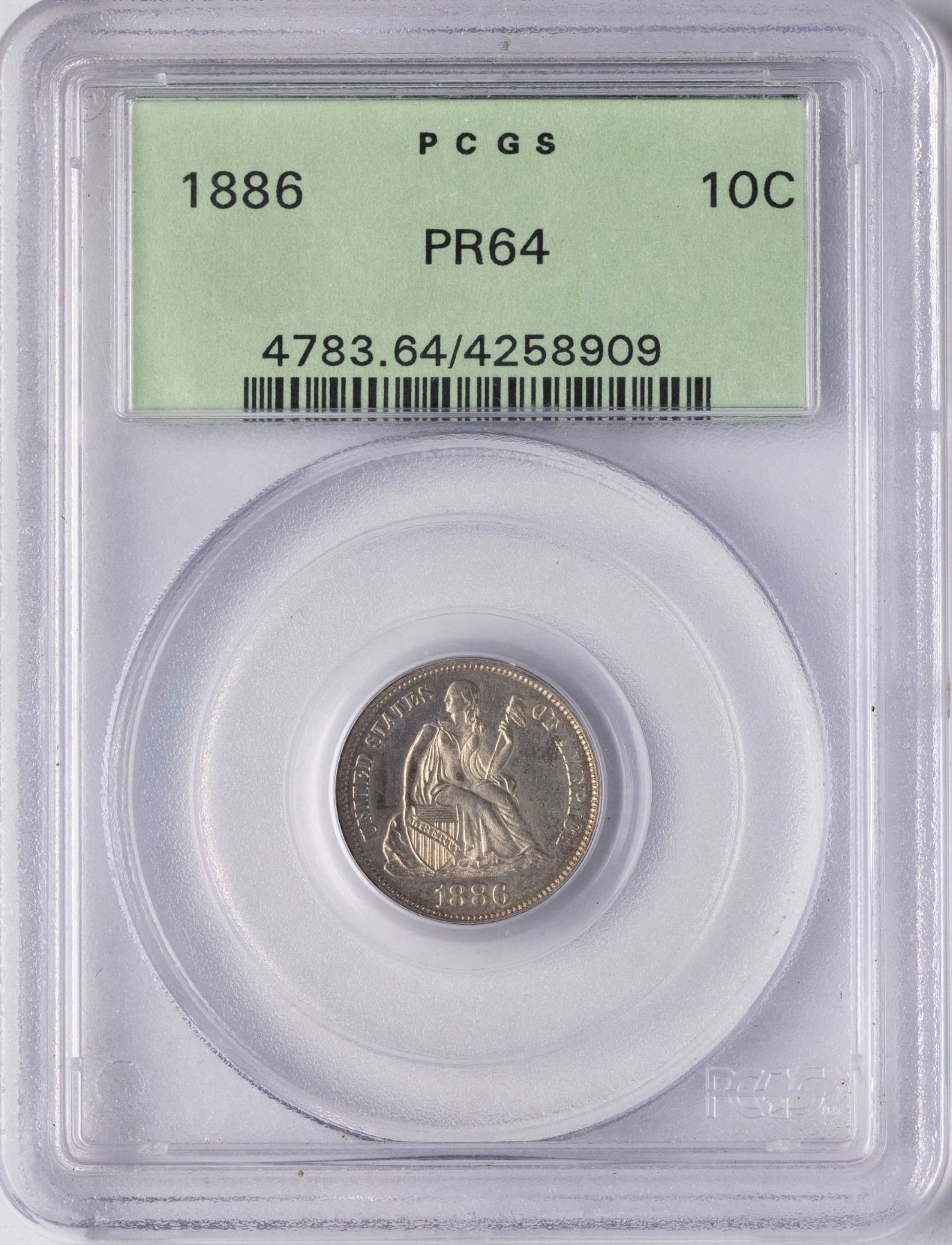 One 1886 Proof Seated Liberty Dime Coin PCGS PR64.
