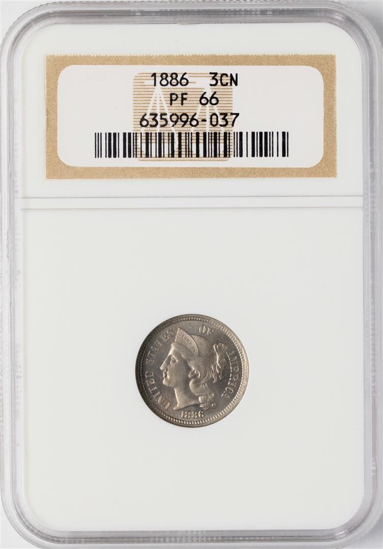 One 1886 Proof Three Cent Nickel Coin NGC PF66. NGC Certified.